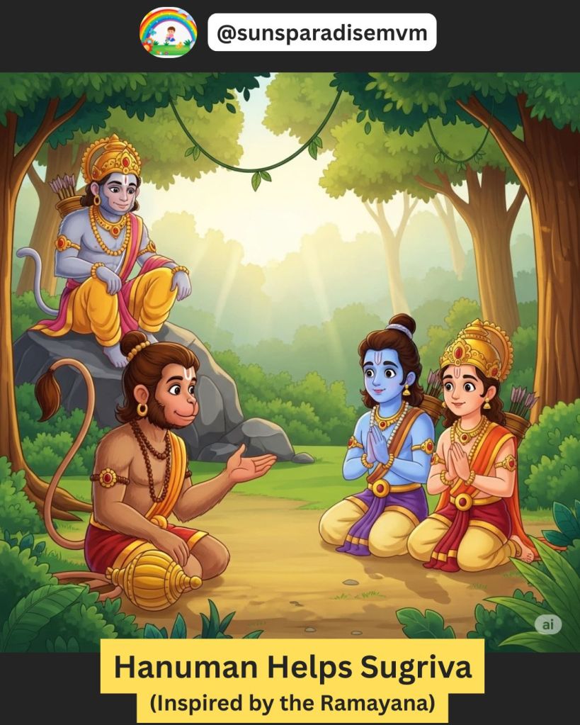 Because of Hanuman’s kindness and wisdom, a beautiful friendship began — one that helped change everything.